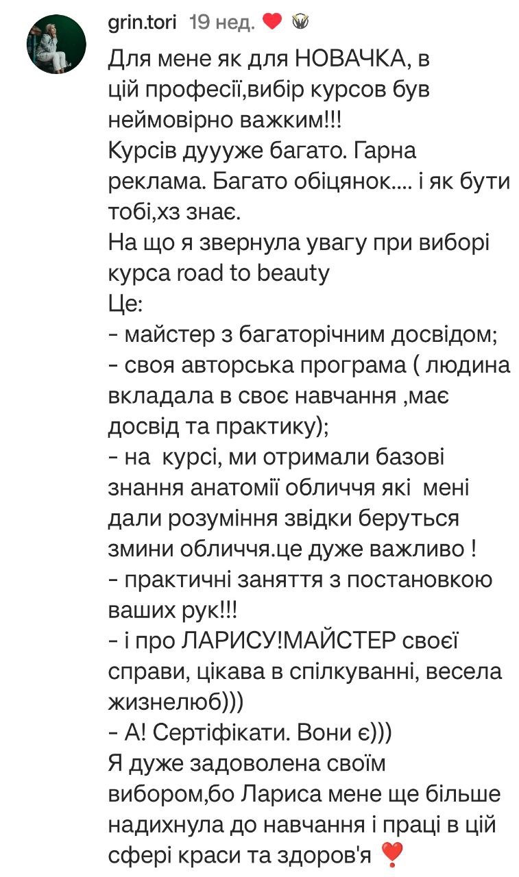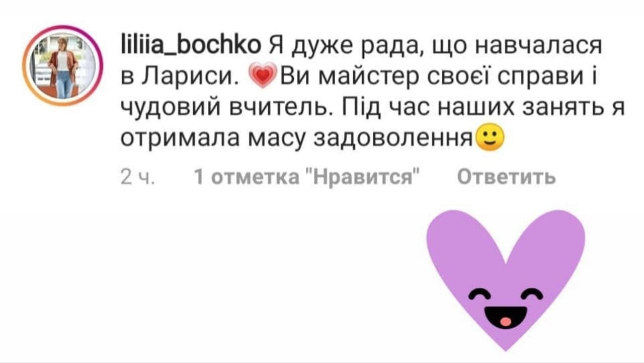 - Розпочинаємо практику. Надсилаю відео першого заняття. Відпрацьовуєте на своїх моделях, відправляєте відео, корегую техніки та затверджую правильність виконання.