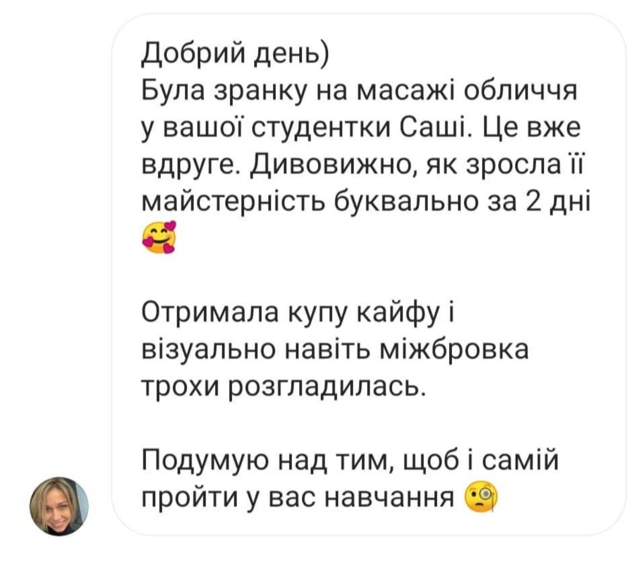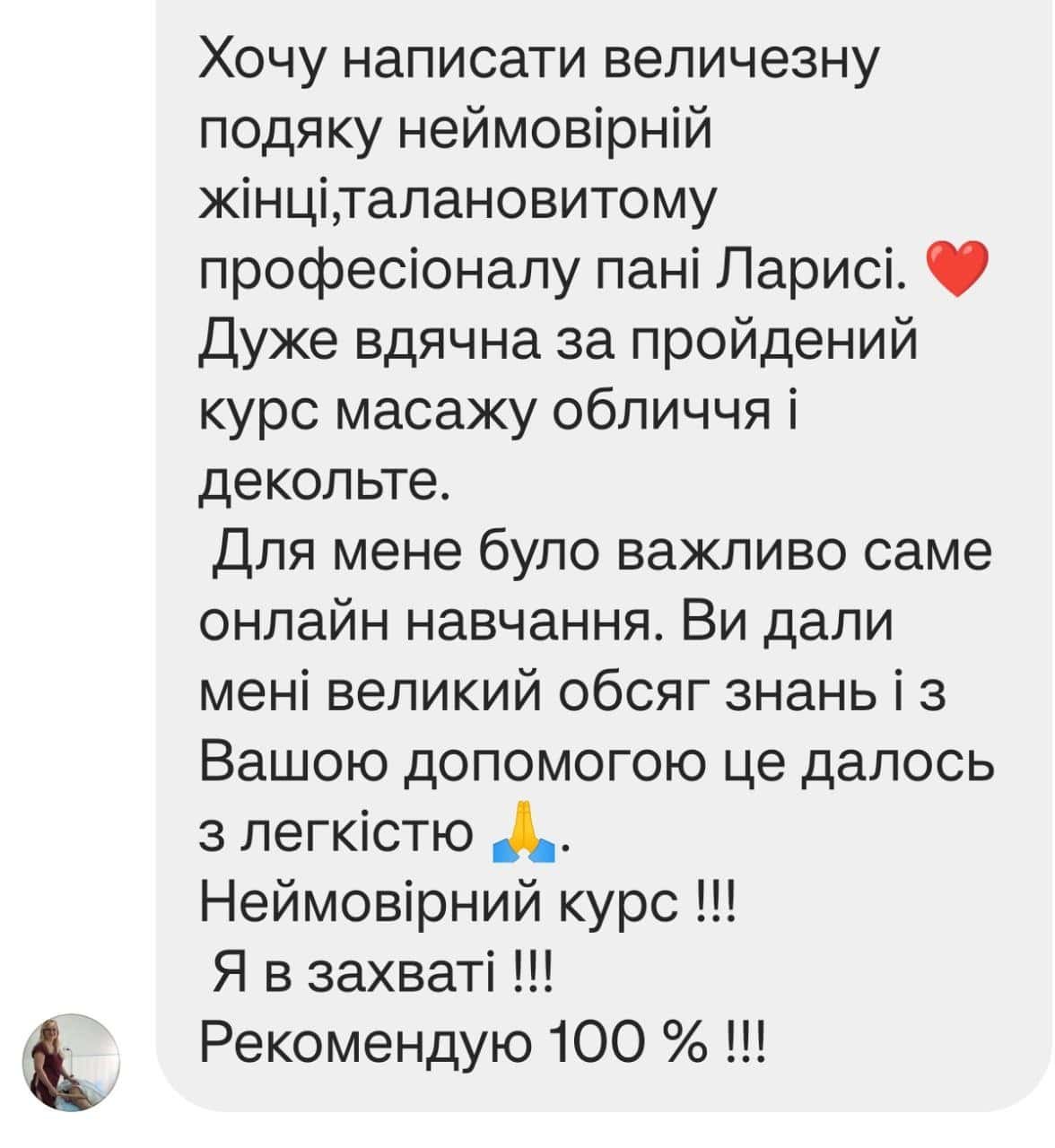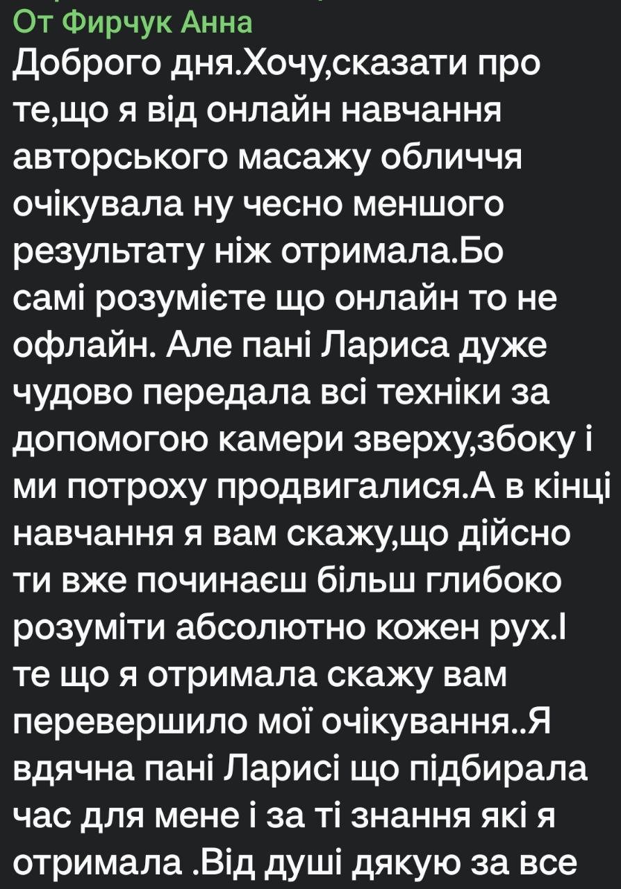 - Надаю відео слідуючого заняття і так до завершення всіх уроків масажу. Навчання походить в індивідуальному телеграм каналі.